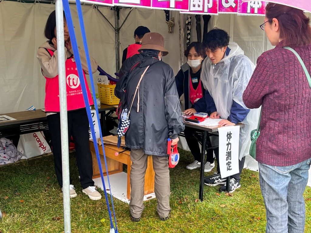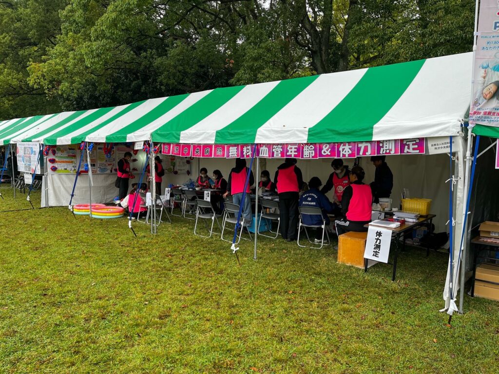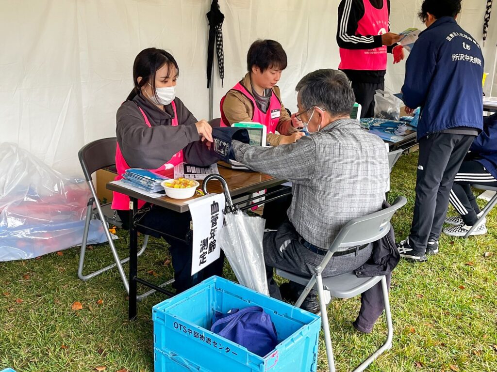 このイベントは、所沢市を中心とした地域の皆さまが集う毎年恒例の市民行事で、今年も多くの来場者でにぎわいました。当院のブースでは、地域の皆さまの健康づくりを応援するため、血管年齢測定・体力測定・骨密度測定など、身近な健康チェックを体験いただけるコーナーを設けました。測定結果をきっかけに、日頃の生活習慣や運動習慣を見直す方も多く、「今の自分の体の状態が分かってよかった」「健康管理の意識が高まった」といったお声をいただきました。