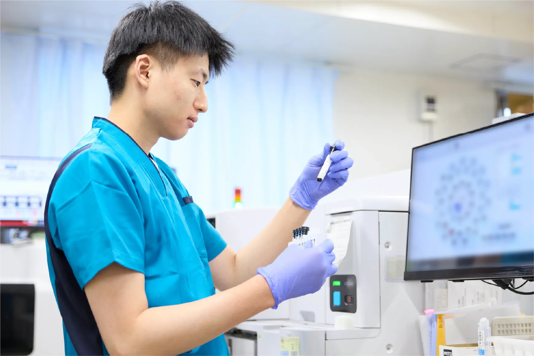 臨床検査室では、患者さまの健康状態を正しく把握するために、さまざまな検査を行っています。これらの検査結果は、病気の診断や治療方針の決定に欠かせない大切な情報であり、医師の的確な診断と治療を支える役割を担っています。