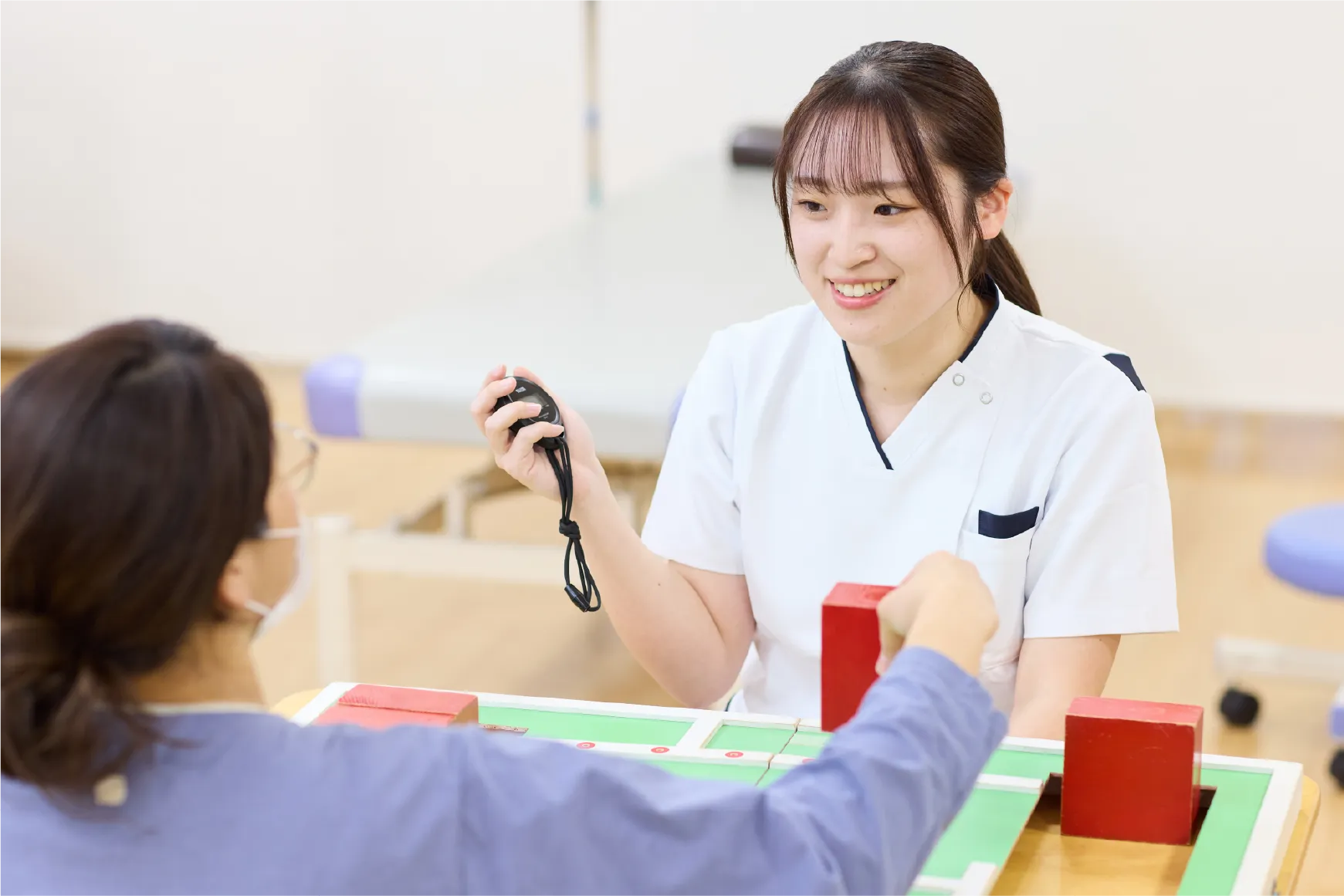 当院では、発症直後や手術後の早期リハビリテーションに力を入れており、患者様が早期に日常生活動作(ADL)を獲得できるよう支援しています。また、廃用症候群の予防にも積極的に取り組んでいます。さらに、外来リハビリテーションも実施しており、退院後のご自宅での生活に即した指導を行うことで、安心して日常生活を送れるようサポートしています。