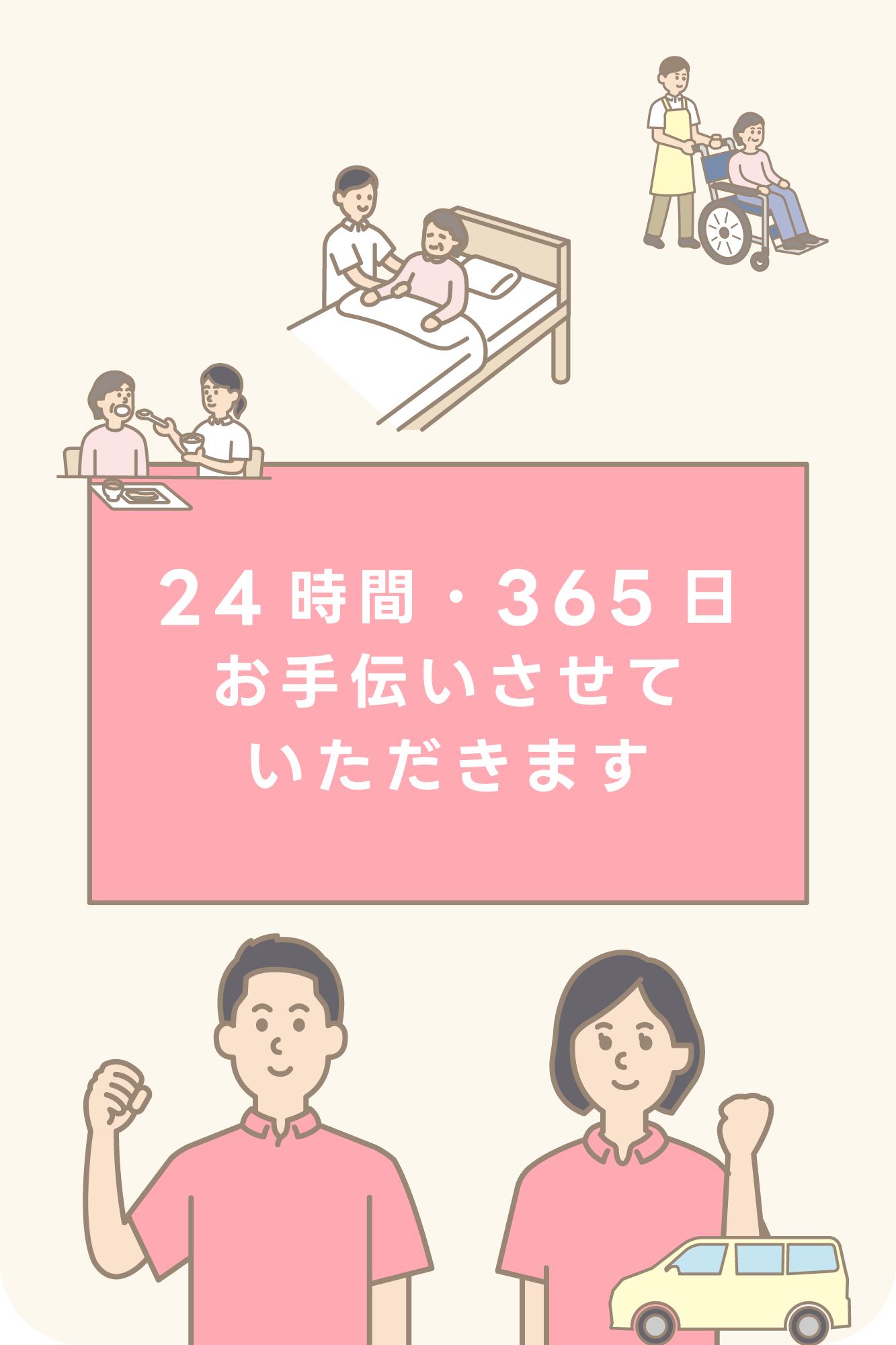 - 入浴、清拭、洗髪、食事、排泄などを手伝ってほしい